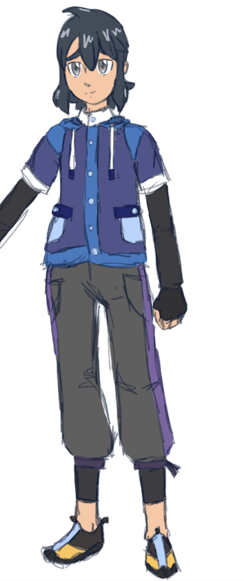 After posting the Morgan pic for Fankidtober I realized that I had this full-body design sketch for him sitting around that I’d never posted to the blog whoops. So here is Morgan’s full form!! A lot of his outfit elements are based on various Ash outfits (but obvs had to get some purple in there for Paul). His shoes are Shinx-colored just because. He looks sporty to disguise how much of an edgelord he is while in costume for competitions haha. (He at least has a hood though that he can put up to be all mysterious.)