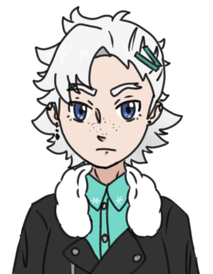 Lunen is one of those Gijinka/Humanized Legendary Pokémon fankids I have a few of in this AU, though not as prominent or plot important as, say, Tanith. His parents are Roxie (who he takes the most after in looks) and Alvar (Keldeo). He also has a twin sister named Sunna who’s way more outgoing than he is and takes more after their father. He’s an ice-type trainer who’s main qualities are being short (like his mom) and being mega tsundere, though Bertie has him wrapped around his finger. After his boyfriend goes missing, Lunen is even colder than usual, training extra hard to fill the void, but when Bertie comes back he starts smiling more than he ever has. They’re very cute together. I can see him either taking over his mother’s gym and converting it to Ice-type or reopening Brycen’s old gym down the line.