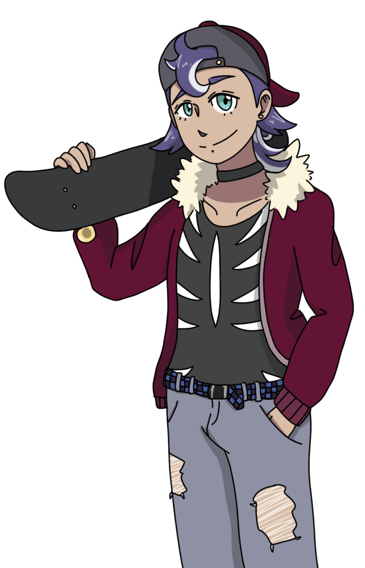 The finer details of Charlie’s personality are still WIP but I think he’s more laid back than his older siblings, not really worrying about the future and living in the moment. He’s friendly even if not the most outgoing and is the type of person others feel safe relying on since he’s so open and never seems to be in a bad mood. All the same, he does take some things very seriously, like his skateboarding (which he wants to try and go pro with someday) and training with his pokémon for Pokéathlons, which is where he shows a similar competitive streak to Nasrin.